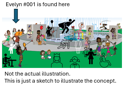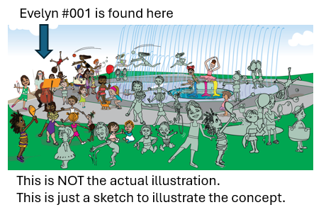 STEP TWO: I create a “hidden objects” picture with all of the Evelyns.